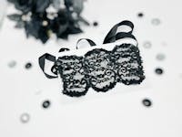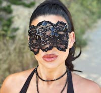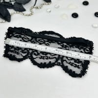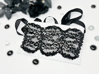 Feel sexy and elegant when you wear this gorgeous black lace blindfold fetish masquerade mask. Perfect for dressing up your Venetian cosplay, sexy photoshoots, inimate occasions, gothic wedding lingerie and flirty bridal gift for her. The semi-sheer scalloped lace and sparkly rhinestones will keep all eyes on you.