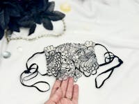 You will feel sexy and elegant when you wear this gorgeous, black and white floral lace face mask. Three layers total with two layers of super soft, ivory white, cream jersey lining. Perfect for dressing up any outfit for special occasions, festival fashion, rave wear, masquerade party, concert attire, fancy travel and engagement gifts for her. This captivating face cover will get you so many compliments and keep all eyes on you.