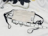 Three layers total with two layers of super soft, ivory white jersey lining and a flexible nose wire insert for comfort and styel. Adjustable, black elastic loops can be tied around the ears or head. Fits women's one size. Handmade, featuring high quality upcycled fabrics and details. Hand-wash/ air-dry recommended. Sustainable shipping included, plus gift-wrapping by request. To preserve the pristine quality of this handmade face mask, the cover photo is powered by Cosmic AI.