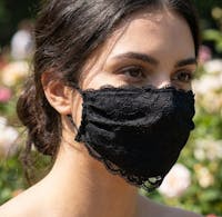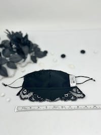 Three layers with a flexible nose wire insert for comfort and style. Adjustable, black elastic loops can be tied around the ears or head. Fits women's one size. Handmade, featuring high quality upcycled fabrics and details. Hand-wash/ air-dry recommended. Sustainable shipping included, plus gift-wrapping by request. To preserve the pristine quality of this handmade face mask, the cover photo is powered by Cosmic AI.
