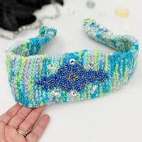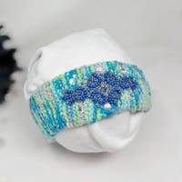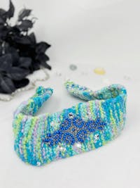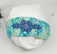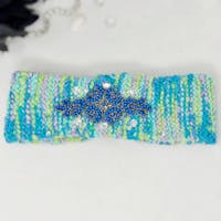 Turquoise Blue Handknit Beaded Headwrap