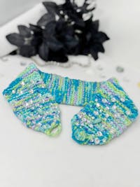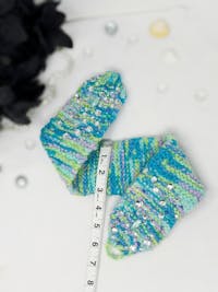 โจ Hand-knit with turquoise & blue crimp yarn
