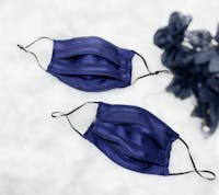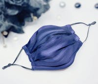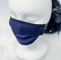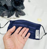 This beautiful, navy blue reusable face mask is handmade from two layers of sheer striped chiffon with a filter pocket opening and flexible nose wire for comfort and style. Perfect for dressing up any outfit for back to school, office attire, special occasions, day to night, evening wear, fancy travel masks and fashionable gifts for her. You will get so many compliments when you wear this reusable, elegant style.