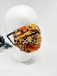 Fits women's one size with a flexible nose wire insert for comfort and style. Adjustable, soft black elastic earloops can be retied for the perfect fit. Handmade, featuring high quality upcycled fabric and trims. Sustainable shipping included, plus gift-wrapping and custom orders by request.