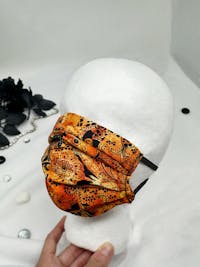 You will feel comfortable and stylish when you wear this elegant, black and orange cotton face mask. The celestial pattern is perfect for Halloween, back to school, fall fashion, travel, day to night and teacher gifts for women. Handmade from two layers of high quality cotton with a filter pocket opening and a flexible, nose wire insert. You will get so many compliments when you wear this lightweight, breathable face cover.