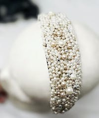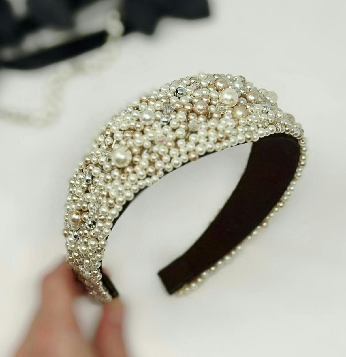 You will feel and look magical when you wear this one of a kind, handmade pearl headband. The wide, hairband design is the perfect for statement for dressing up any outfit for special occasions, festival fashion, editorial photoshoots and handmade gifts for her. The one of a kind, hand-beaded design with chunky pearl beads and rhinestones will get you so many compliments.