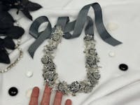 One of a kind and handmade from high quality upcycled trims no one else will have. Adjustable ribbon ties, fits women's one size, approximately 25" inches around the head. This can also be worn as a necklace. You can style this so many ways! Sustainable shipping included, plus gift-wrapping and custom orders by request.