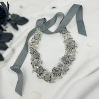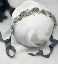 You will feel and look magical when you wear this gorgeous, silver floral beaded headband. The soft white lace lining and adjustable, grey ribbon ties provide a comfortable style that can also be worn as a necklace. Perfect for dressing up your festival fashion accessories, fairy costume outfits, boho wedding attire, boudoir photoshoots, and handmade gifts for her. The captivating, intricate flowers design will get you so many compliments and keep all eyes on you.