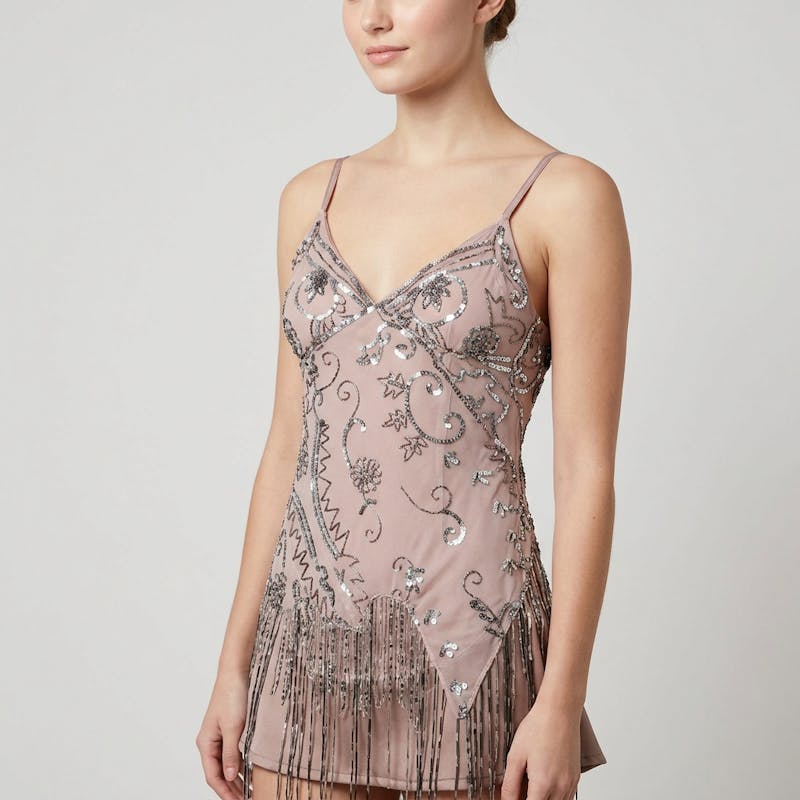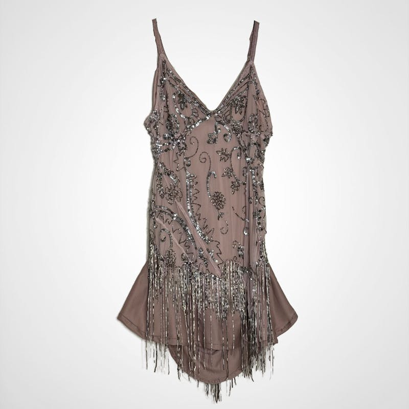 Beaded Blush fringe flapper mini dress