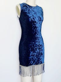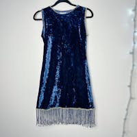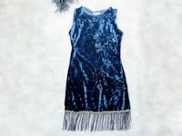 This gorgeous, blue velvet, fringe flapper dress will make you feel festive and beautiful. Perfect for dressing up for special occasions, fall fashion, Great Gatsby party, Halloween flapper costume and sexy cocktail events. The royal blue velvet and sparkly fringe hem will keep all eyes on you.
