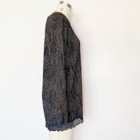 Comfortable, pullover fit with stretch, for women's size medium. Shown on a USA size 8 dress form. One of a kind and handmade featuring high quality, upcycled materials. Hand-wash/air-dry only. Sustainable shipping included, plus gift wrapping by request.