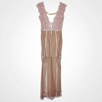 This gorgeous, blush lace lingerie gown will make you feel sexy and elegant. The gorgeous, sequin floral, scallop lace design with ribbons and a plunging neckline will keep all eyes on you. Perfect for dressing up your evening wear, intimate occasions, boudoir photoshoots and romantic wedding gifts for her.
