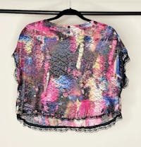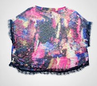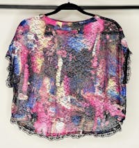 • Sheer, colorful lace crop top.