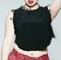 • Black sequins lace tank top.