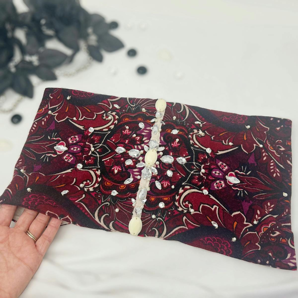 You will feel sexy and elegant when you wear this gorgeous, paisley knit corset top with rhinestones. Perfect for dressing up your sexy festival outfits, editorial photoshoots, special occasions and romantic gifts for her. You will get so many compliments whenever you wear this stylish, one of a kind design.