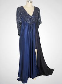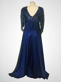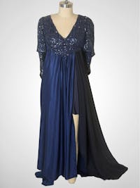 • One of a kind navy sequins gown.