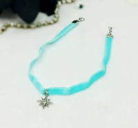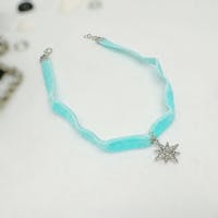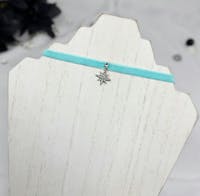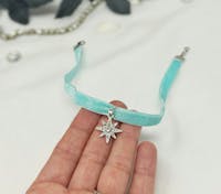 Teal Velvet thin choker collar, star charm necklace