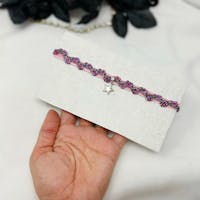 Thin Pink Velvet Choker with star charm, embroidered floral necklace