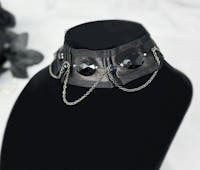 You will feel sexy and elegant when you wear this gorgeous, gothic choker necklace with gems and layered chains. The one of a kind, wide, black pleated satin ribbon design is handmade from upcycled details. Perfect for dressing up any outfit for festival fashion, rave wear jewelry, special occasions, BDSM cosplay and witchy jewelry gifts for her. You will get so many compliments whenever you wear this wide gothic collar.