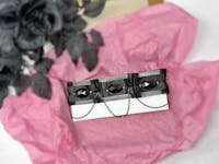 • Black pleated ribbon design.