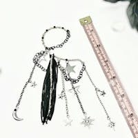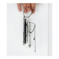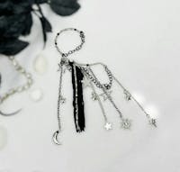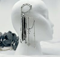 You will feel and look magical when you wear this gorgeous, non-pierced ear cuff featuring a black fringe design with celestial charms and long tassel chains. No piercing required! Perfect for dressing up any outfit for festival fashion, rave wear, concert attire, date night and handmade jewelry gifts for her. You will get so many compliments when you wear this stylish earring.