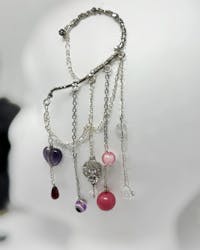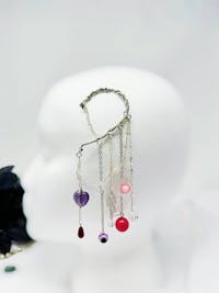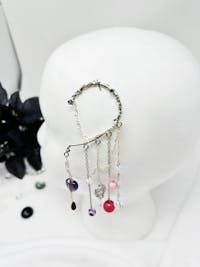 Whimsical, colorful, and conversation-starting. This non-pierced ear cuff features a pink evil eye charm, star pendant, colorful beads, and long dangle chains โ magic for your ears.