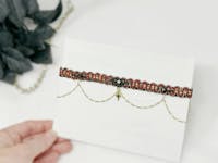 The thin collar band measures 3/8" inch wide, with an adjustable chain and lobster clasp. Fits women's, one size, 12"-15" inches around. For custom length add your finished measurement to the personalization box. Handmade, featuring high quality upcycled materials. Sustainable shipping included, plus gift-wrapping and custom orders by request.